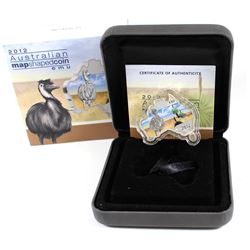 Perth Mint: 2012 Australia $1 Emu Map-Shaped Fine Silver Coin (small stain on outer sleeve) TAX Exempt