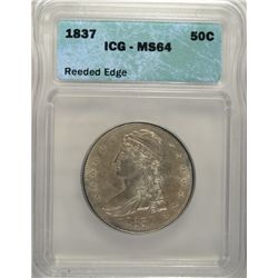 1837 BUST HALF DOLLAR ICG MS 64 REEDED EDGE, SUPER!