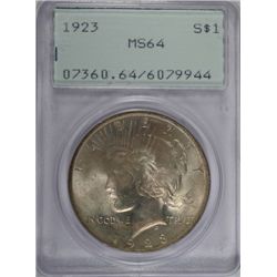1923 PEACE DOLLAR PCGS MS 64 "RATTLER"