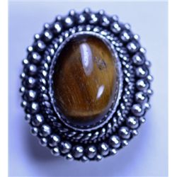 New German Silver Tiger Eye Ring, Size 7