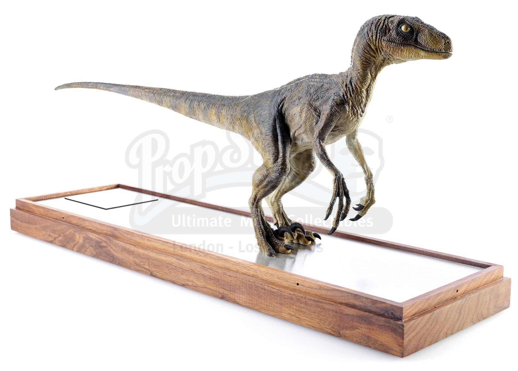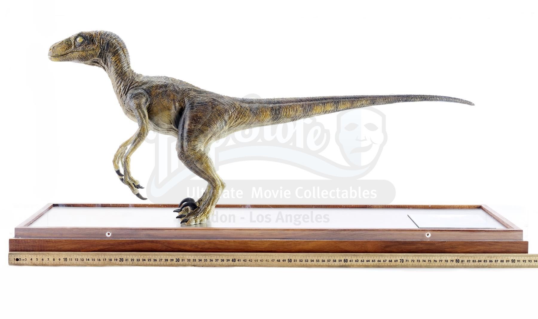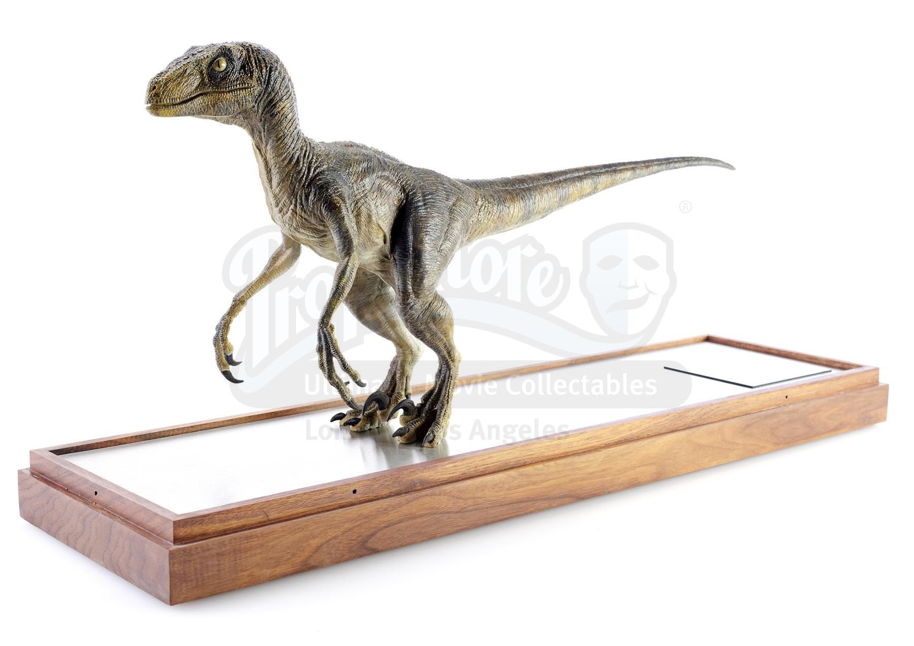 A Steven Spielberg ILM raptor model crew gift from his sci-fi action adventure film Jurassic Park. After the film's production, Spielberg gifted a small number of key crew members with encased models that resemble the raptors that overran the park.