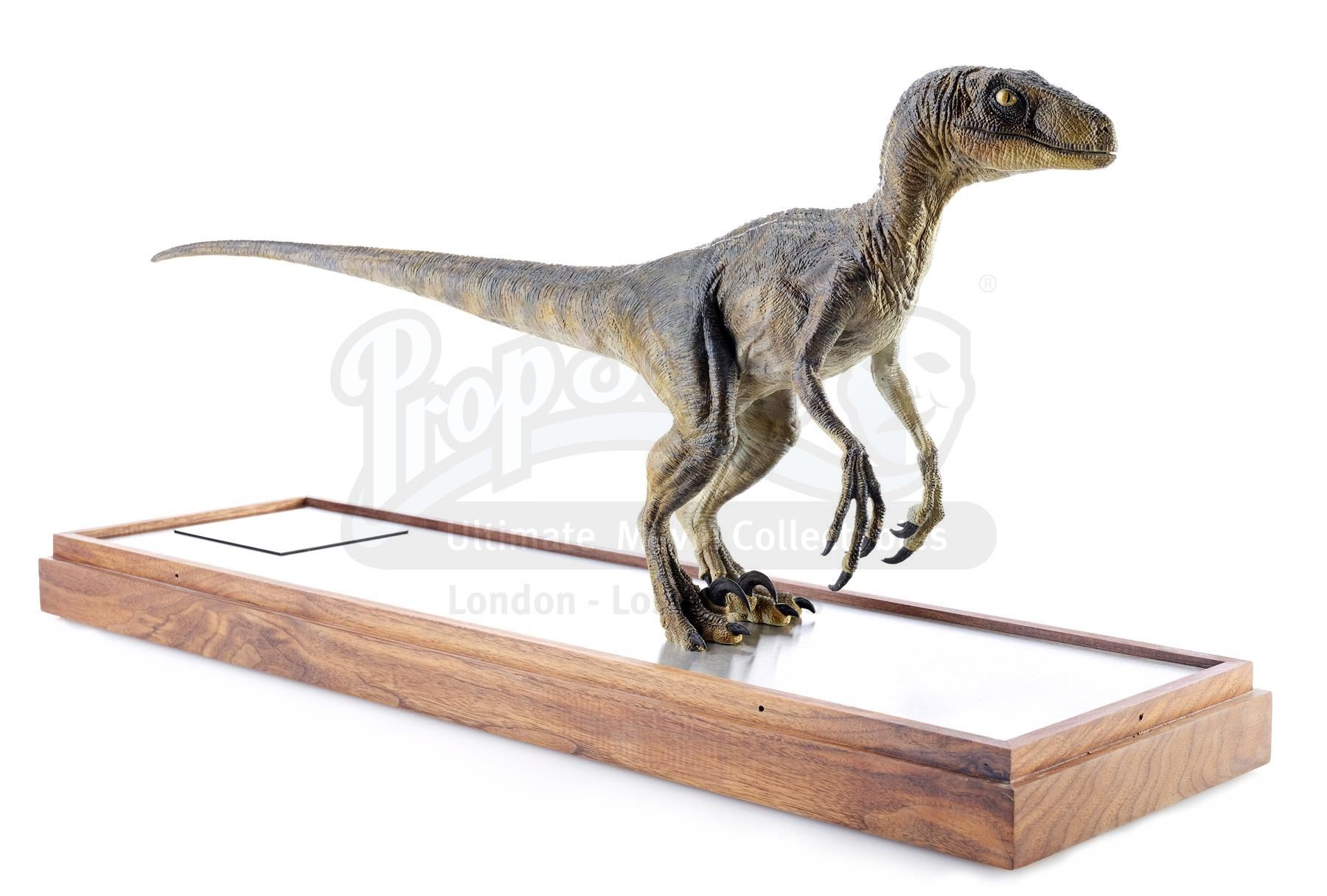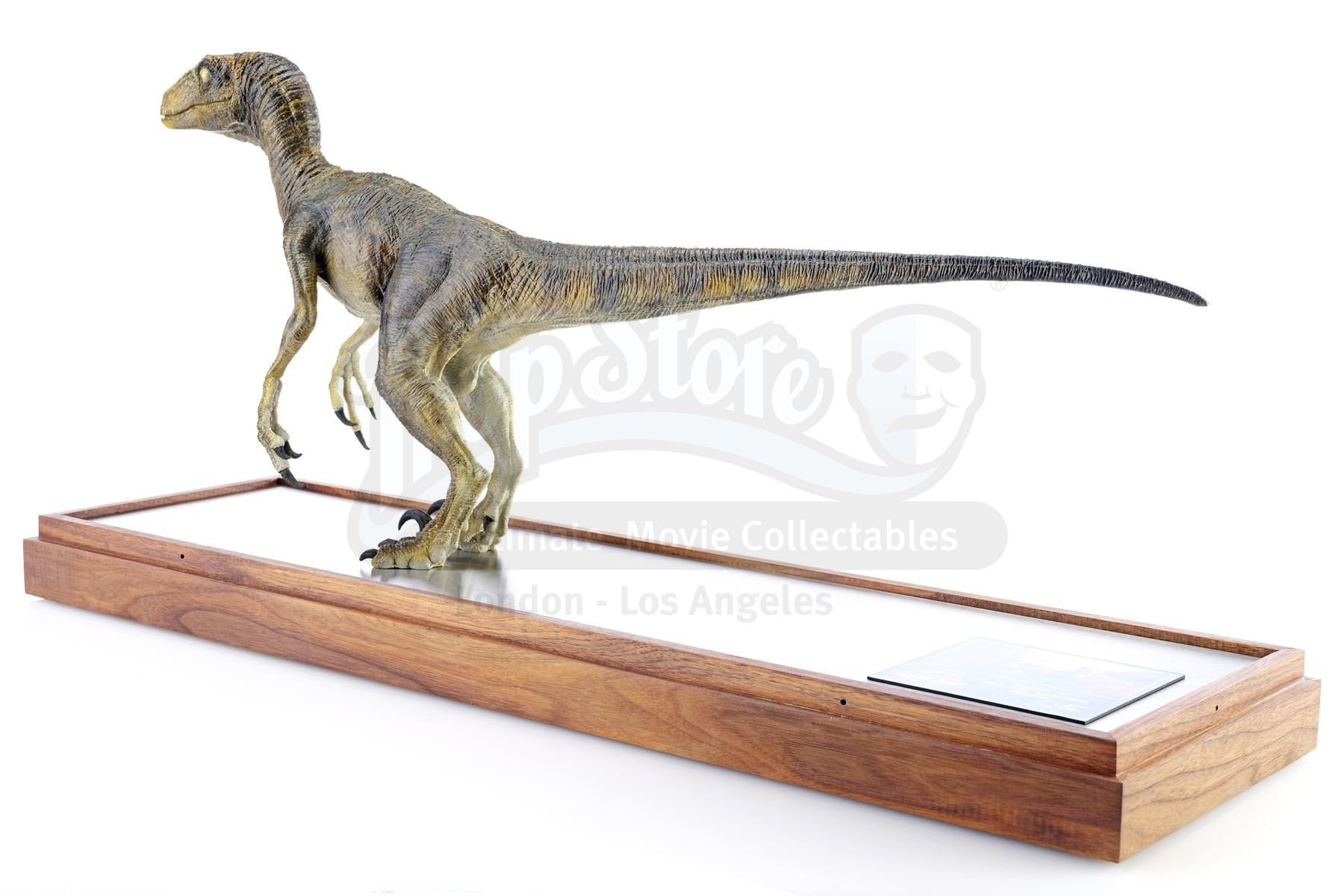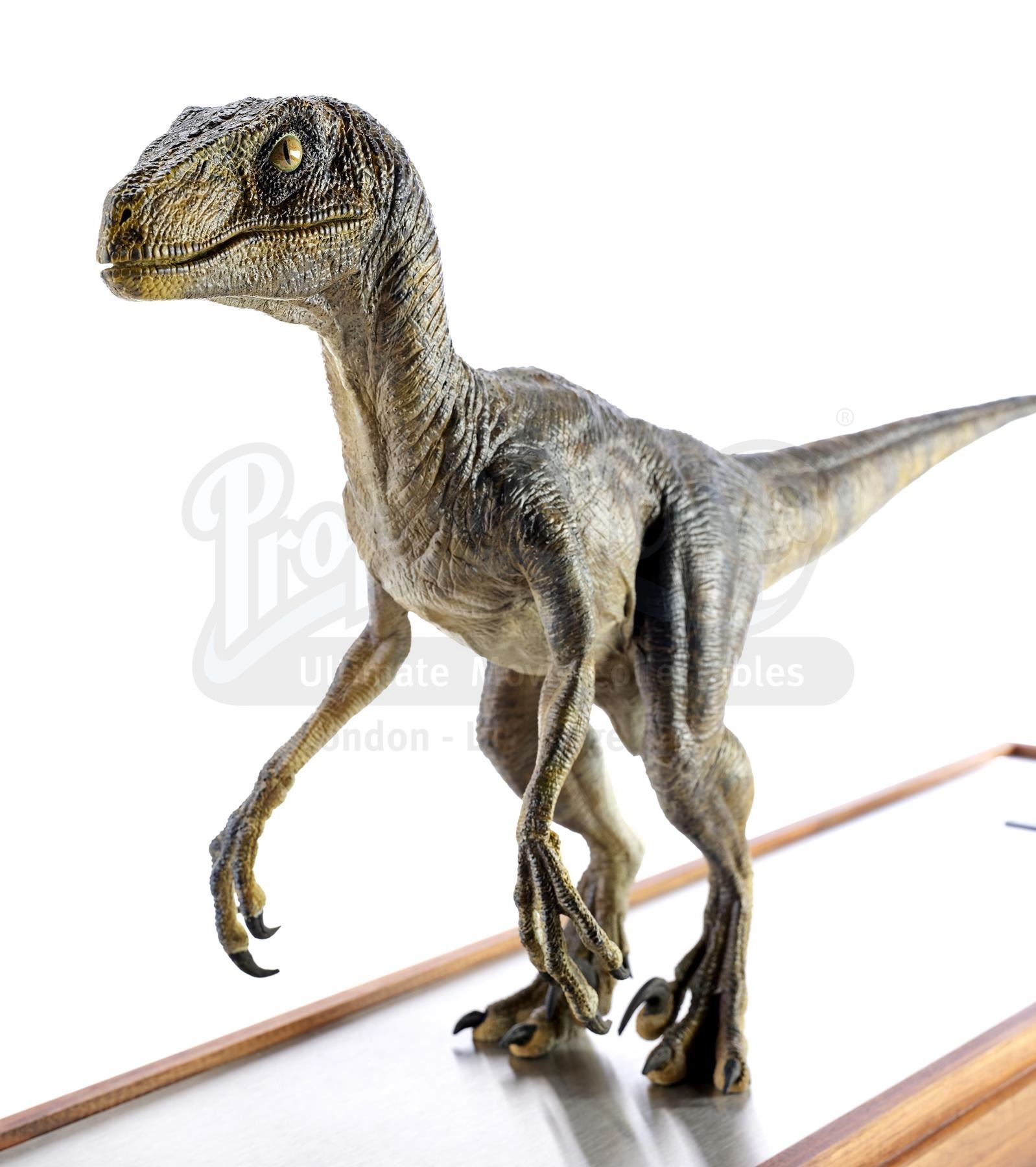 A Steven Spielberg ILM raptor model crew gift from his sci-fi action adventure film Jurassic Park. After the film's production, Spielberg gifted a small number of key crew members with encased models that resemble the raptors that overran the park.