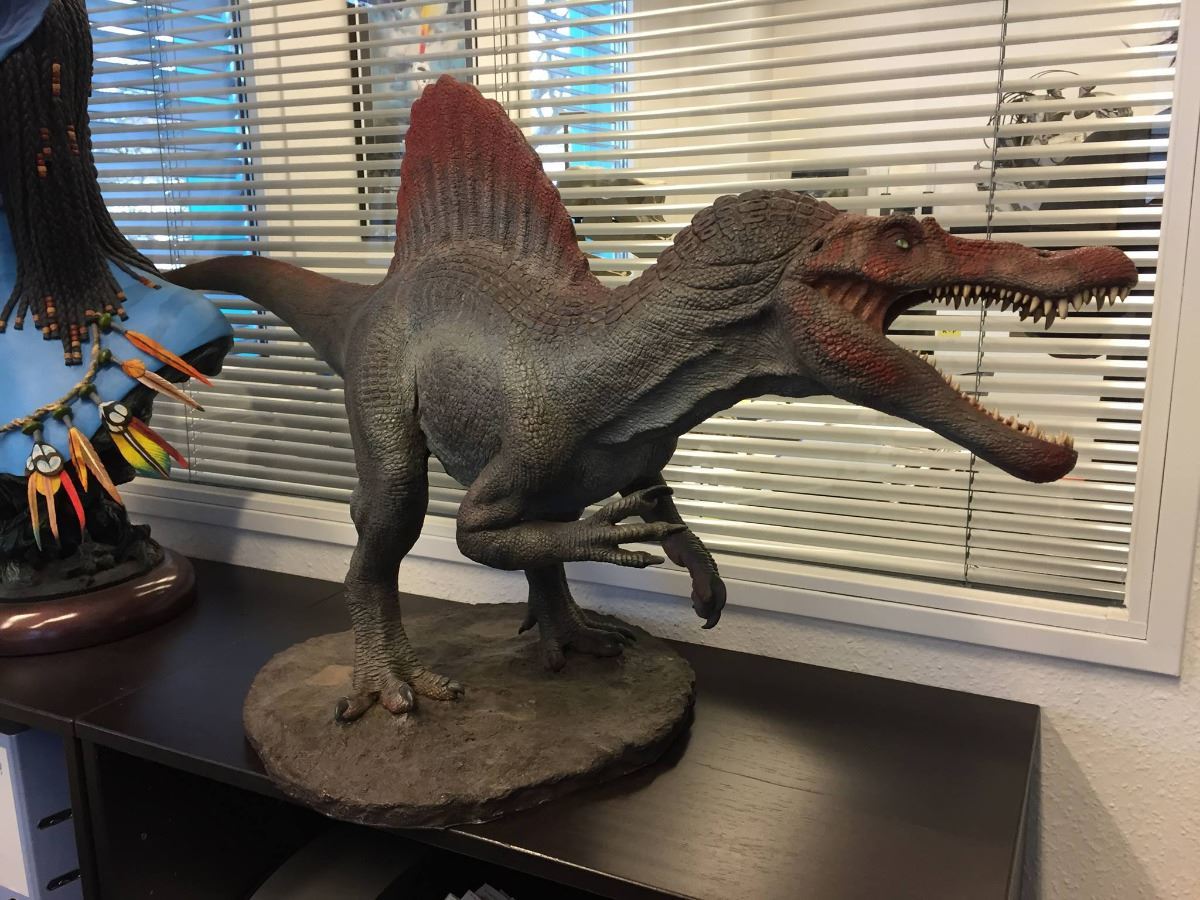 Solid JP3 Spinosaur Maquette painted for display. 63 inches long! It has acrylic teeth and Eyes.