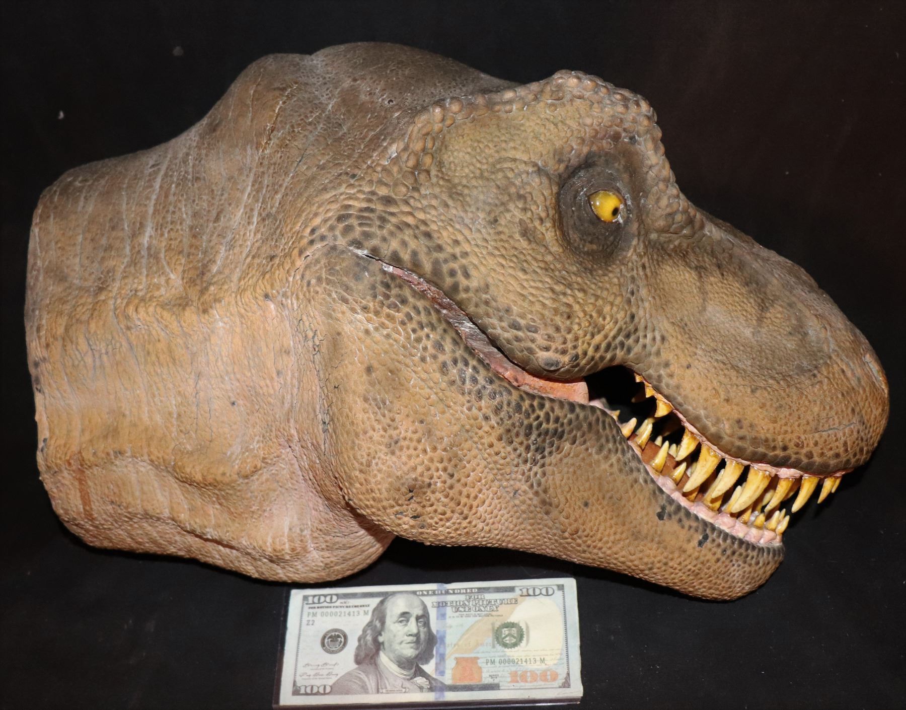 This is the incredibly cool 1/5 scale T REX head hand puppet head with spring loaded jaw and cable intact!