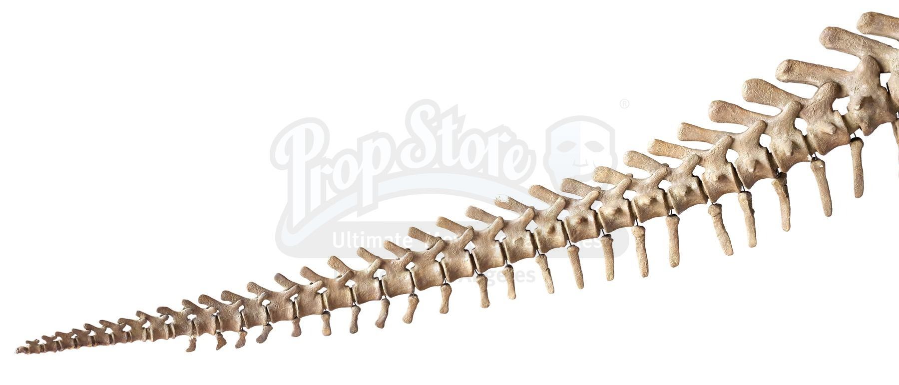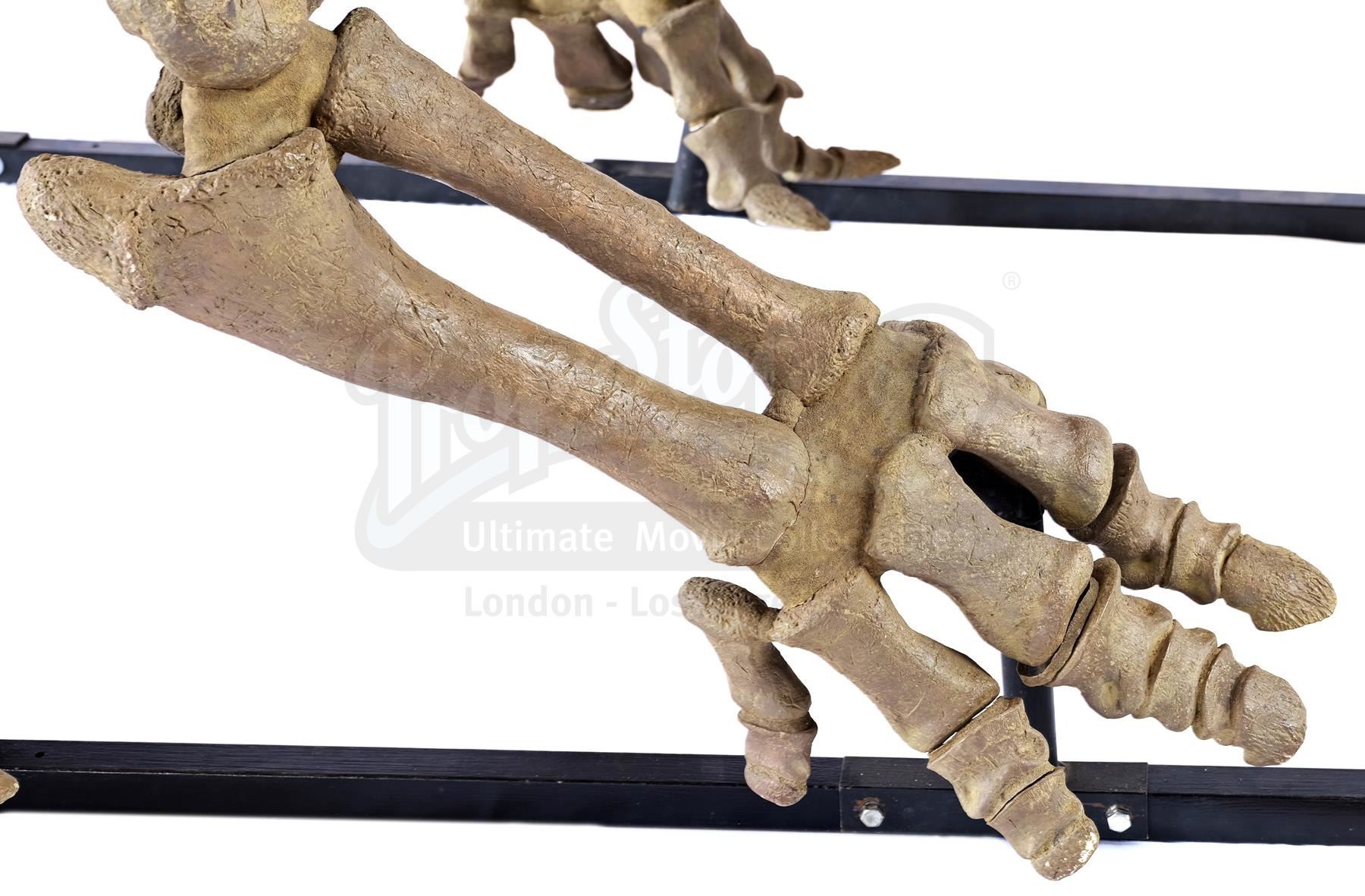 This custom-made skeleton was cast in durable plastic resin materials and mounted with a reinforced stainless steel armature in a rigid, scientifically accurate walking pose. The elaborate skeleton model breaks down into multiple components for transportation, and a steel base is included for display. This skeleton is in excellent condition. This piece includes a letter of authenticity from the vendor who provided it for filming. Dimensions (assembled): approximately 4.6 meters (15') long; (crated): 228.5 cm x 122 cm x 122 cm (90" x 48" x 48")