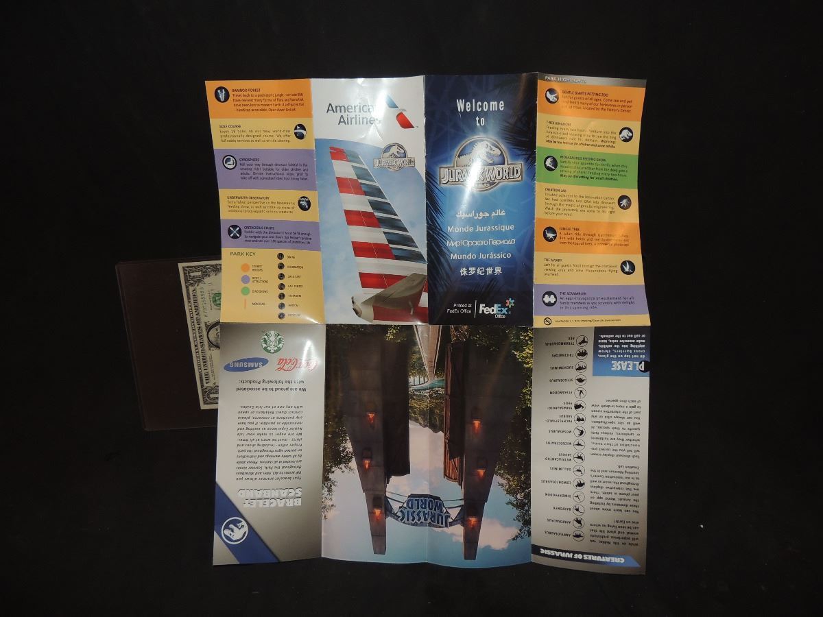 JURASSIC WORLD PARK MAP BROCHURE