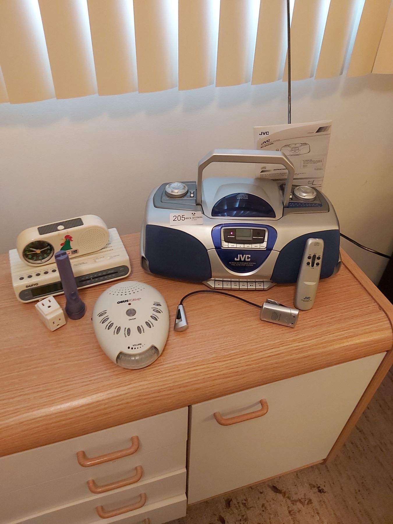 JVC CD portable system Model # RC-BX33 (tested). white noise machine, sanyo clock radio & Kellogg's clock radio