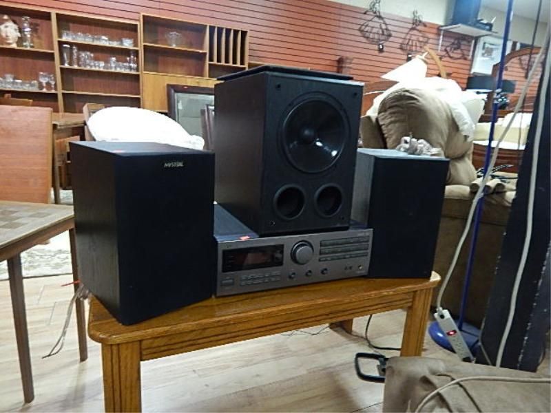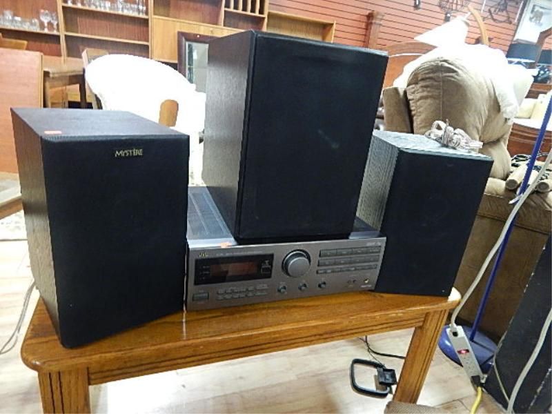 JVC STEREO AMP WITH 2 SPEAKERS AND SUB WOOFER