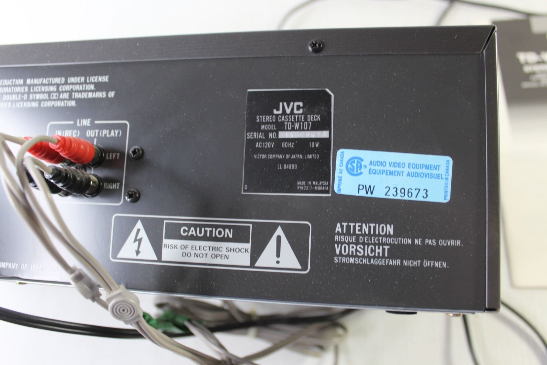 JVC TD-W107 Stereo Double Cassette Deck With Manual