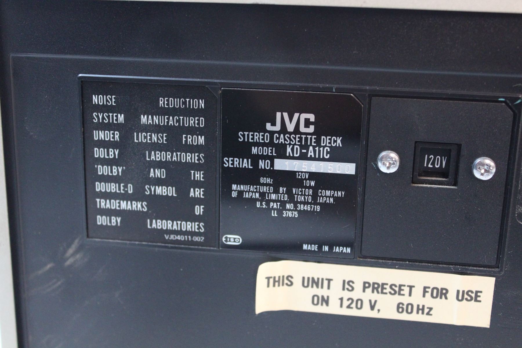 JVC stero cassette deck (turns on)