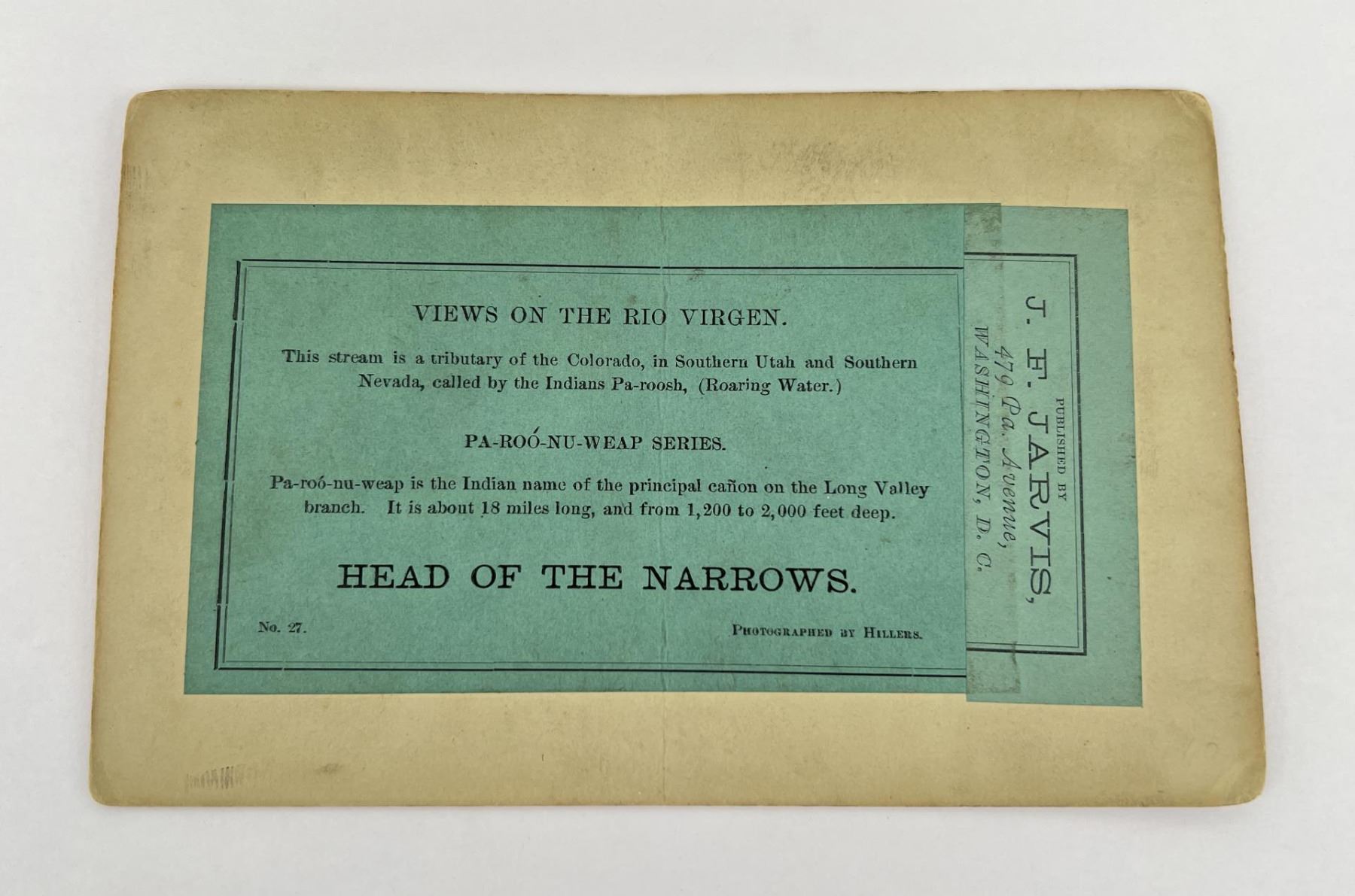 Views on the Rio Virgen, Pa-Roo-Nu-Weap Series. Head of the Narrows, No 27. Photographed by Hillers.