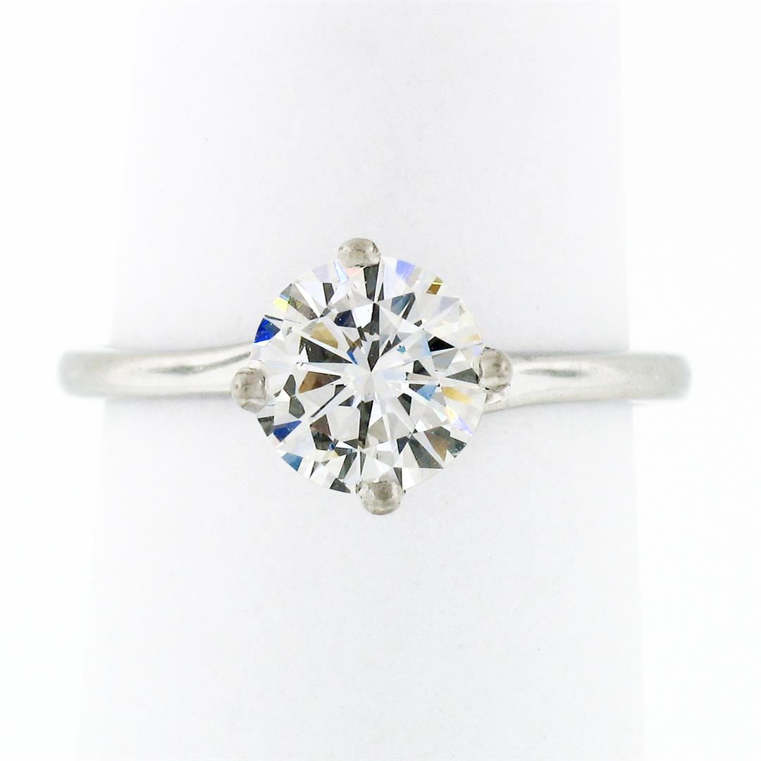 An estate solid 18k white gold engagement ring by Jabel, with 1 Gia certified round brilliant cut natural diamond (E - SI2; 1.02ct). The ring is size 5.25, weighs a total of 2.32 grams, and measures 7.71mm wide. Comes with all original relevant certifications.
