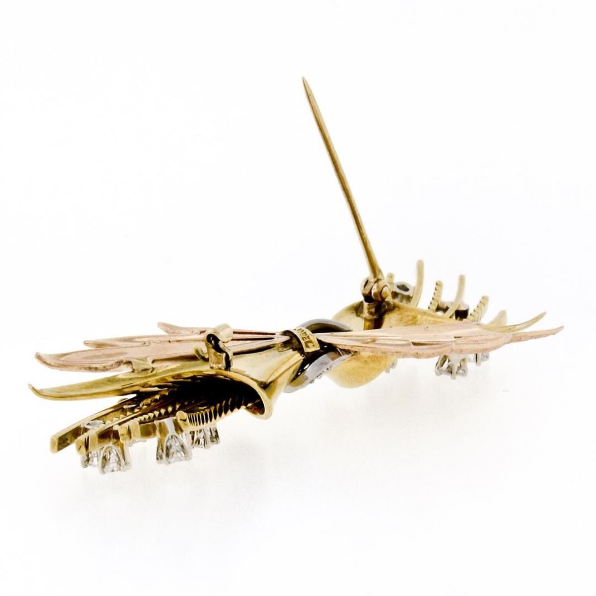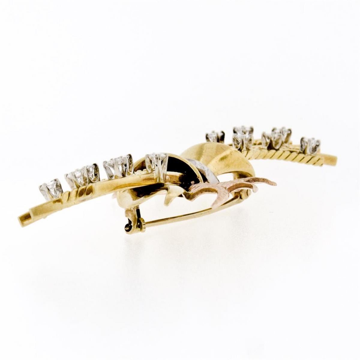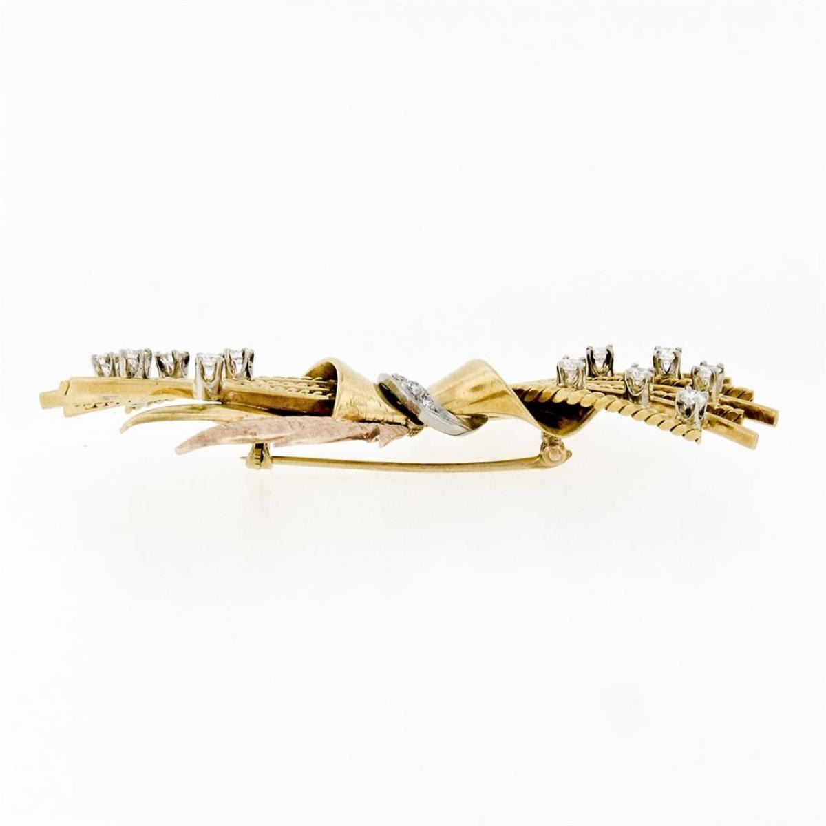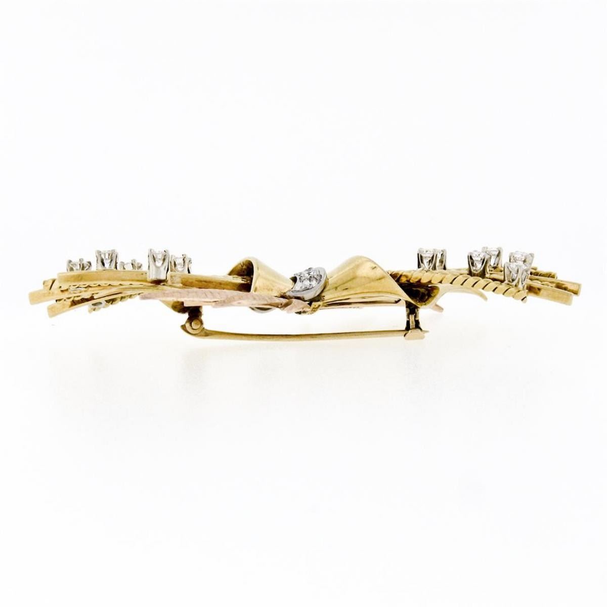 Jabel Vintage 18K Gold .90ct Diamond Textured Multi-Wire Spray Bow Brooch Pin. A vintage solid 18k tri-color gold brooch made in the United States by Jabel featuring 16 round brilliant cut natural diamonds (F/G - VVS2/VS1; 0.90ctw). Measures 33.75x14.50mm and weighs a total of 15.78 grams.