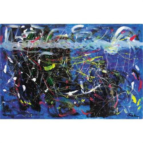 <B>JACK BUSH (Canadian, 1909-1977)</B></I><BR><I>Abstraction in Black and Blue</B></I><BR>Oil on canvas<BR>48 x 72 inches (121.9 x 182.9 cm)<BR>Signed lower right: <I>Jack Bush</B></I><BR> <B>Condition Report:</B> Original unlined canvas, craquelure, wear to the corners of the canvas and small spot on the lower edge; 2-1/2 x 1/8 inch repair in the lower right quadrant; unframed<BR><BR><b>Shipping:</b> Requires 3rd Party Shipping (<a target="_blank" href="http://www.heritageauctions.com/common/shipping.php">view shipping information</a>)
