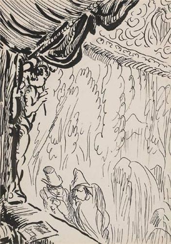 <B>Jack Butler Yeats RHA (1871-1957)</B><BR>ILLUSTRATION TO AND TO YOU ALSO<BR>signed in monogram lower left<BR>pen and ink drawing<BR>19 by 14cm., 7.5 by 5.5in.<BR>Provenance:<BR>The artist's estate; Victor Waddington, London; Kathleen O'Brien, Cork; Dr Michael Ryan, Cork; Thence by descent Jack B. Yeats And to You Also, Routledge, London, 1944, illustrated page 125; With a letter of authenticity from Dr. Hilary Pyle.