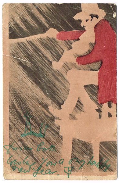 pen and ink with gouache on [post] card