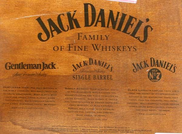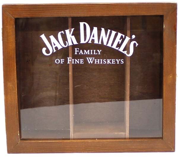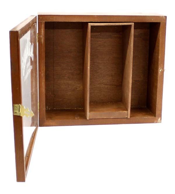 Jack Daniel's Glass & Wood Whiskey Display Box, measures 13'' x 11.5'' x 5''