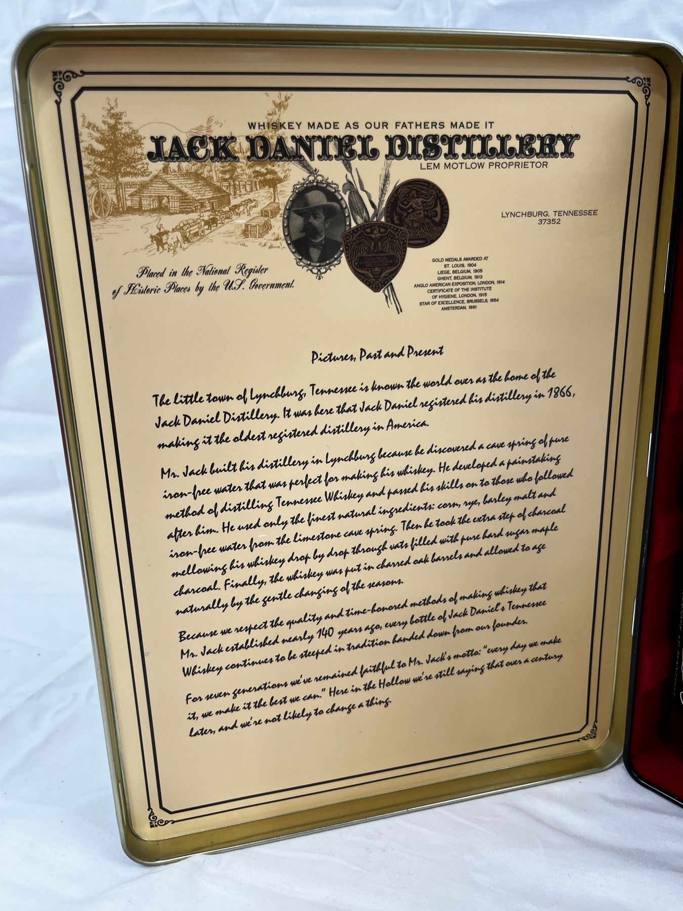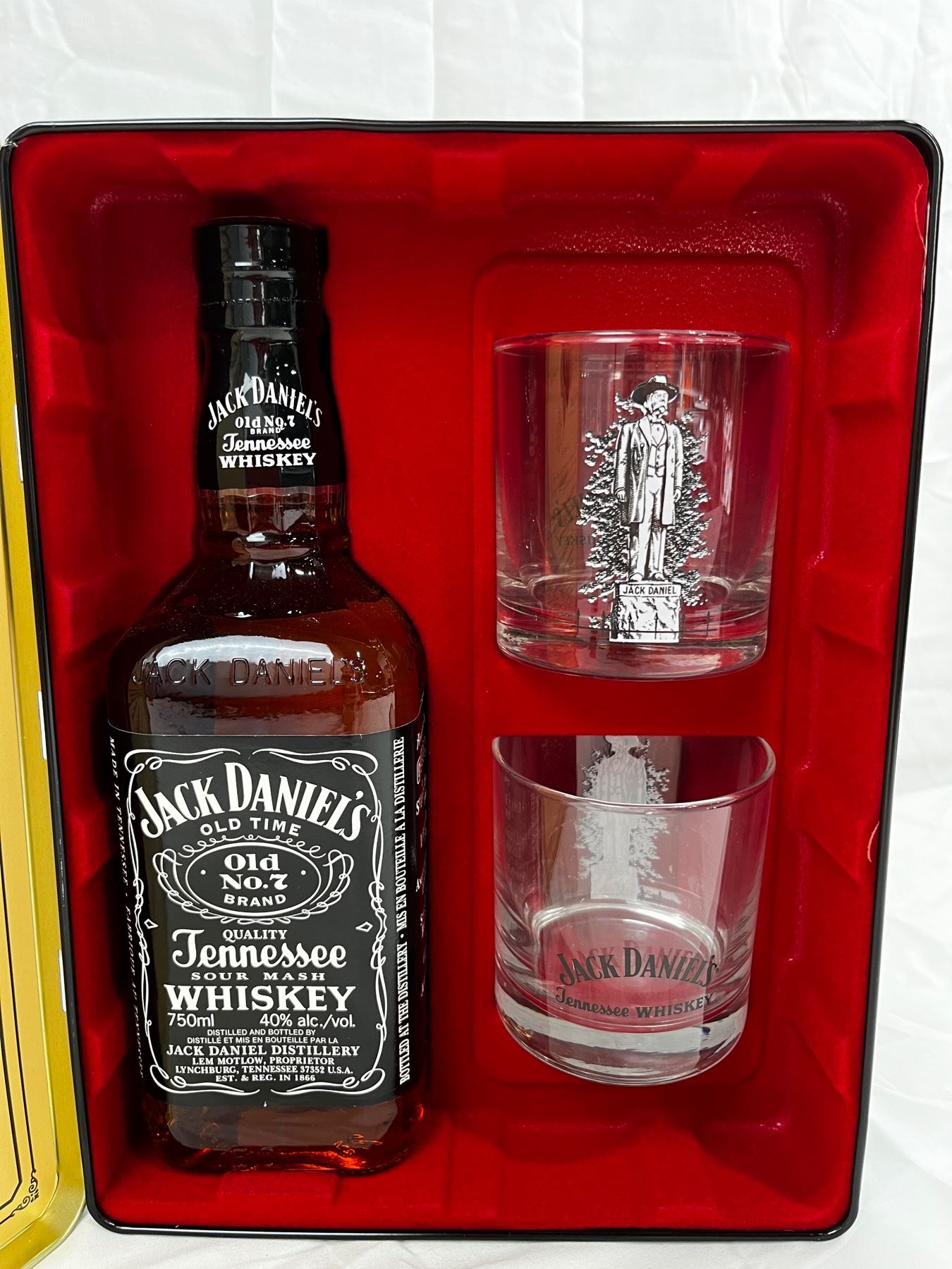750mL unopened with 2 glasses in tin
