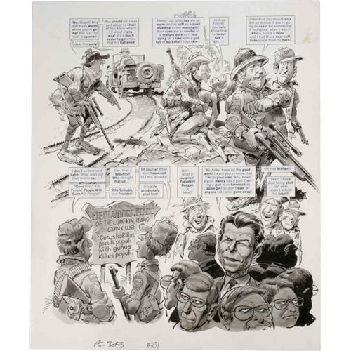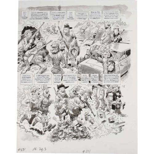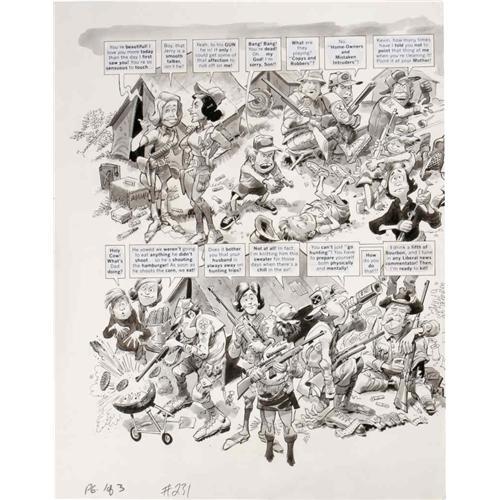 <B>Jack Davis - Mad #231 Complete 3-page Story "A Local Gun Club Picnic" Original Art (EC, 1982).</B></I> Pass the burgers and the bullets -- Jack Davis takes aim at a gun club picnic in this high-caliber romp! Each page of this story has an approximate image area of 18" x 21", and the art is in Excellent condition. <I>From the Mad Magazine Archives</B></I>.