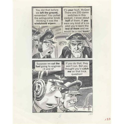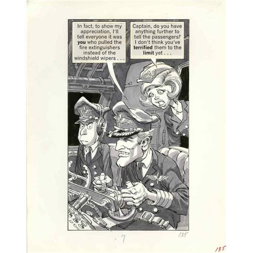 <B>Jack Davis - "The Return of a Mad Look at Old Movies" Page Original Art, Group of 9 (Signet, 1970).</B></I> Before there was the movie "Airplane", there was <B>The Return of a Mad Look at Old Movies</B></I> and "Flight 1313". Dick DeBartolo and Jack Davis' madcap airplane movie parody will have you laughing so hard, you'll grab for an airsick bag! This lot contains page numbers 1, 5, 6, 7, 12, 16, 18, 19, and 22 of the story. Each page has an image area of 7" x 12", and the art is in Excellent condition. <I>From the Personal Collection of Dick DeBartolo</B></I>.