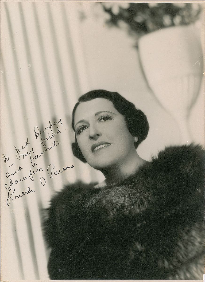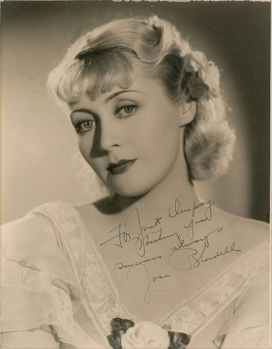 Highly appealing set of four vintage matte-finish photos originally displayed in Jack Dempsey's Broadway Restaurant, each approximately 10.5 x 13.5, signed and inscribed in fountain pen by the celebrity pictured, including: Joan Blondell, Ketti Gallian, Henry B. Walthall, and Louella Parsons. Minus the Parsons photo, each is affixed to a same-size mount. Reverse of Parsons photo bears a William A. Fraker photography credit stamp. In overall very good to fine condition, with some scuffing to Walthall and some edge staining and chipping to Gallian.
