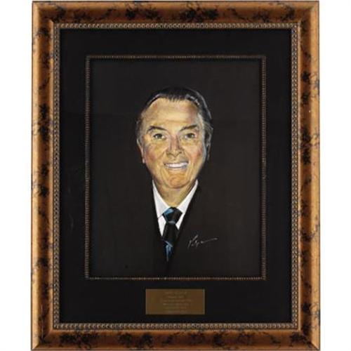 <B>Jack Haley CENSORED Club Portrait.</B></I> A 16" x 20" pastel portrait of actor Jack Haley by Nicholas Volpe, from the walls of the Beverly Hills CENSORED Club. The portrait has been matted and framed, along with a small brass plaque listing some of Haley's notable screen work (including, of course, <I>The Wizard of Oz</B></I>), to an overall size of 26" x 31.5" and is in Excellent condition. <I>From the Beverly Hills CENSORED Club Celebrity Roast Archive.</B></I><BR><BR><b>Shipping:</b> Framed - with Glass, Medium (<a target="_blank" href="http://www.heritageauctions.com/common/shipping.php">view shipping information</a>)