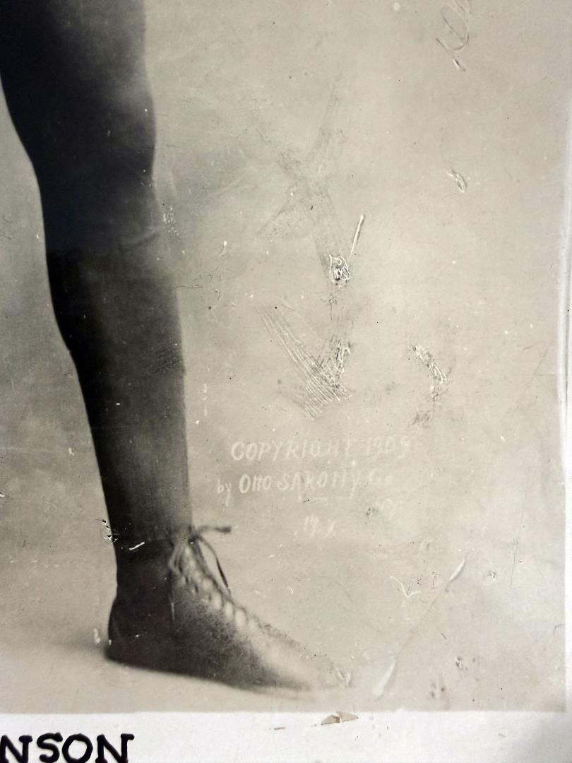 8" by 10". Photographer is Otto Sarony, dated 1909. John Arthur Johnson (March 31, 1878 – June 10, 1946), nicknamed the Galveston Giant, was an American boxer who, at the height of the Jim Crow era, became the first black world heavyweight boxing champion (1908–1915).