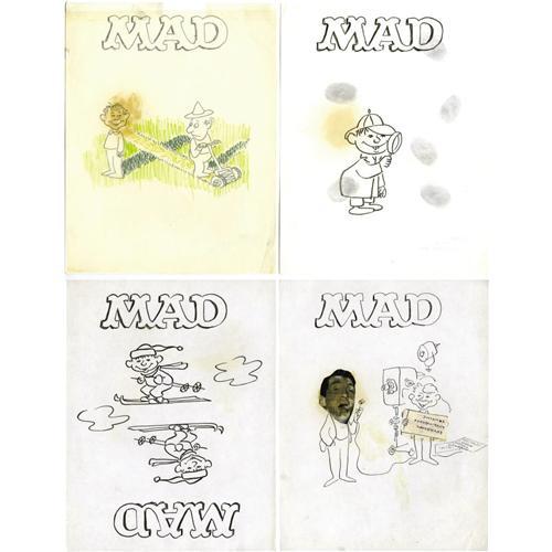 <B>Jack Kent - Mad Cover Preliminary Original Art, Group of 4 (EC, circa 1970s).</B></I> <I>King Aroo</B></I> creator, Jack Kent, dreamed up these four furshluginer <B>Mad</B></I> cover gags. Wild and wacky stuff. These mixed-media roughs have an approximate overall size of 8.5" x 11", and they average Very Good condition.<BR><BR><b>Shipping:</b> Flat Material, Small (<a target="_blank" href="http://www.heritageauctions.com/common/shipping.php">view shipping information</a>)
