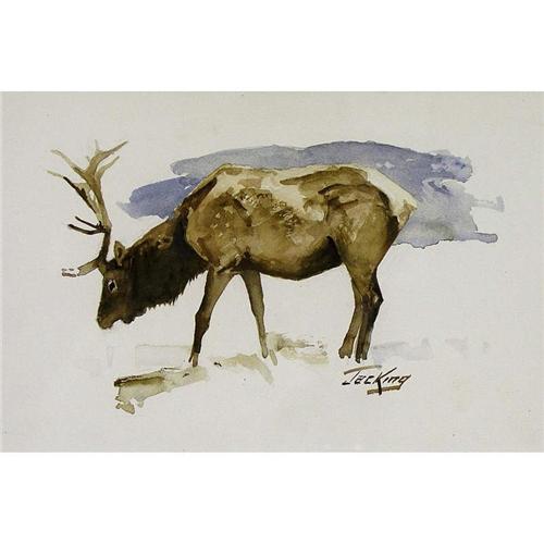 [American 1920-1988] UNTITLED (ELK) Watercolour on paper 8 x 12 in. Signed.
