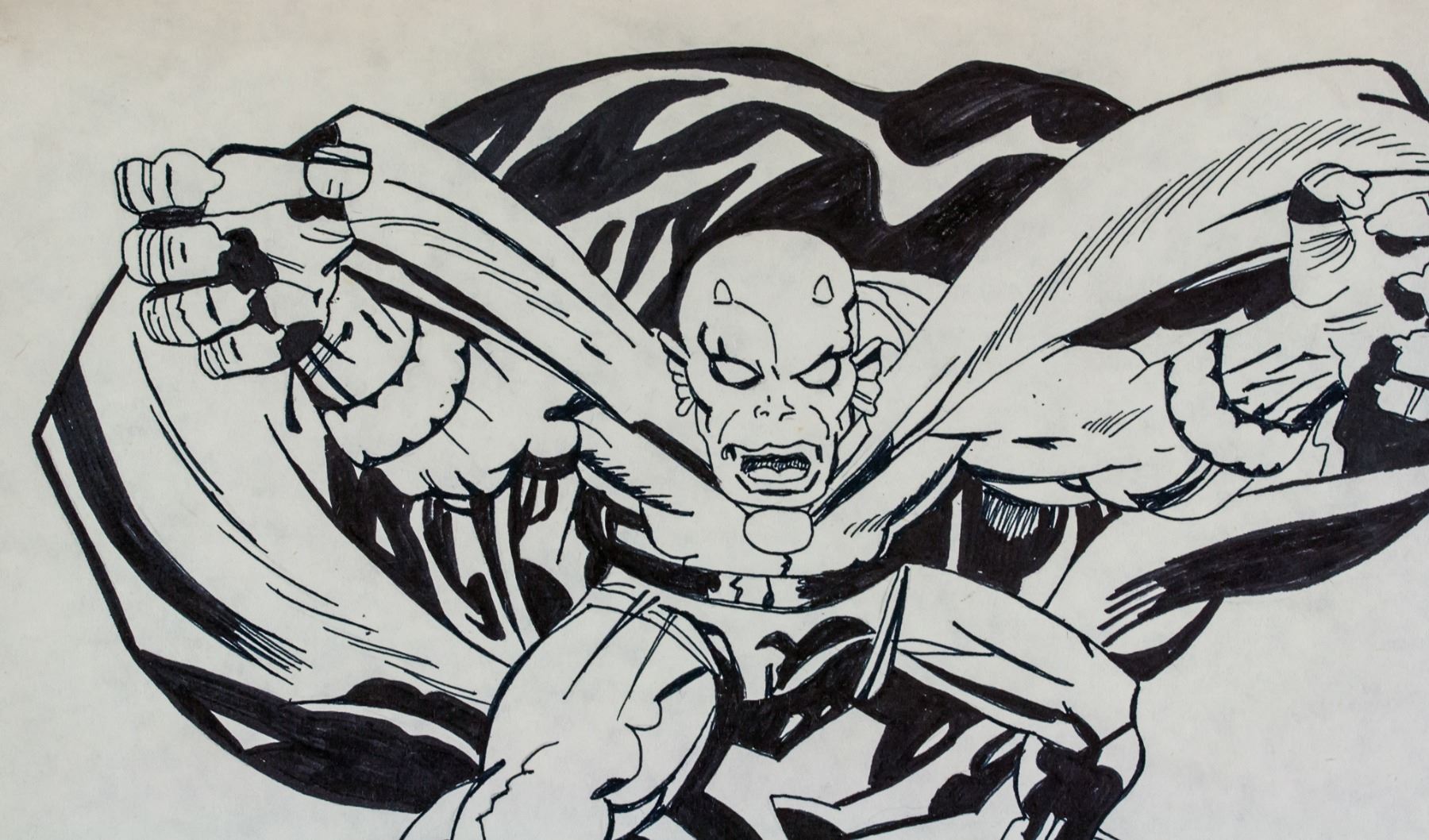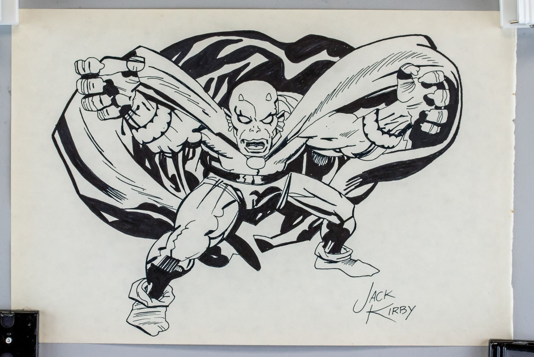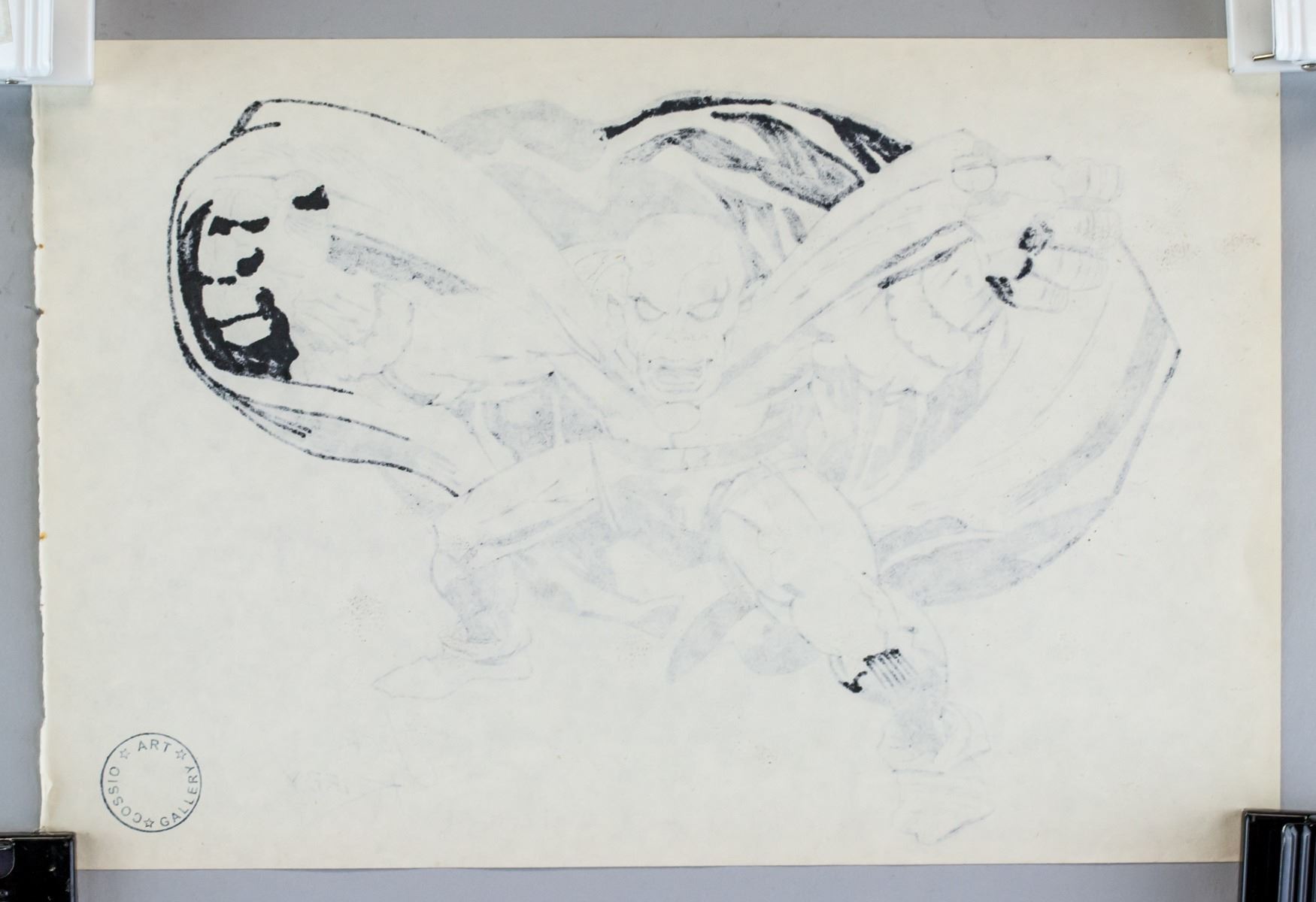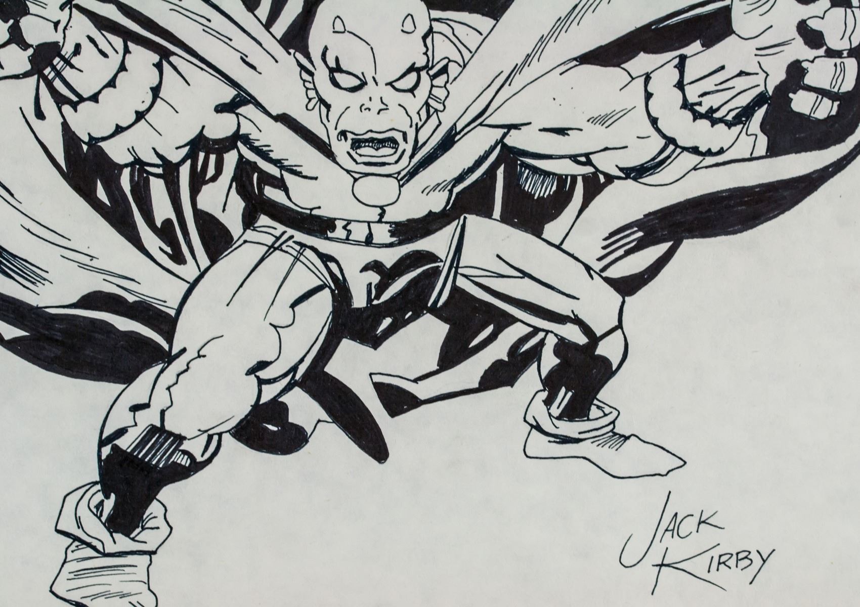 Ink on paper. Featuring a portrait. Signed Jack Kirby on the lower right corner. Stamped GALLERY ART COSSIO on the lower left corner of verso. Attributed to Jack Kirby (1917-1994, American). 21 x 31 cm (8.3 x 12.2 inches). Provenance: This lot carries limited provenance from an Upper New York estate