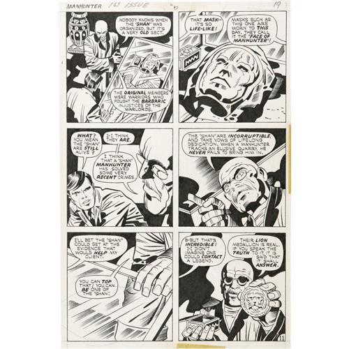 Mark Shaw's uncle explains to his nephew about the secret manhunting sect of warriors called the "Shan," who fought barbaric injustices, in this spectacular page from "The Electric Head," penciled by Jack Kirby and inked by D. Bruce Berry. The image area measures 10" x 15", and, aside from some tape residue staining at the upper and lower edges, the condition is Very Good.<BR><BR><b>Shipping:</b> Small Flat (<a target="_blank" href="http://www.heritageauctions.com/common/shipping.php">view shipping information</a>)