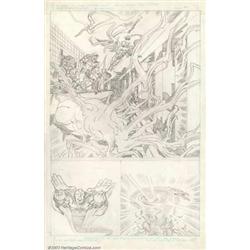 Jack Kirby - Original Art for Super Powers #2, page 4 (DC, 1985). Superb page of Jack Kirby action, including a 2/3 splash. This is a rare example of pure, uninked Kirby pages; during this period, much of Kirby's work was inked on a lightbox by Greg Theakston, in an effort to preserve as much of Kirby's pencil work as possible. The result is this spectacular page, still in its virgin form, with the King's powerhouse pencils lending unparalleled action the story. A must-have for any Kirby collector. 13" x 20" on standard DC stock. Important notice: We expect to be auctioning lots at the rate of 200-250 per hour. Sometimes eBay Premier live bid software cannot keep up with that pace, so we strongly recommend that you place a realistic proxy bid now as insurance to avoid disappointment. Also please note that all Heritage/CAA lots purchased through eBay Premier carry a 20% Buyer's Premium. Please make sure you read the Terms and Conditions.