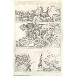 Jack Kirby - Original Art for Super Powers #2, page 9 (DC, 1985). Four spectacular panels of action, featuring such DC favorites as Green Arrow, Hawkman, and Red Tornado, are brought to vivid life by Jack "King" Kirby in this rare uninked page. In order to preserve as much of Kirby's original pencil work as possible, inker Greg Theakston traced Kirby's work onto another sheet of paper and inked those, rather than laying ink over Jack's actual pencils. The result is a rare opportunity to obtain the King at his finest, undiluted by the work of another artist. 13" x 20" on standard DC stock. Important notice: We expect to be auctioning lots at the rate of 200-250 per hour. Sometimes eBay Premier live bid software cannot keep up with that pace, so we strongly recommend that you place a realistic proxy bid now as insurance to avoid disappointment. Also please note that all Heritage/CAA lots purchased through eBay Premier carry a 20% Buyer's Premium. Please make sure you read the Terms and Conditions.