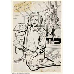 Jack Kirby and Chic Stone - Original Art for Fantastic Four Annual #2, Alicia Pinup (Marvel, 1964). These wonderful pin-up pages from the early FF annuals have always been favorites of Kirby collectors, and this is a beautiful example, depicting Ben Grimm's best girl Alicia Masters, daughter of the Puppet Master. Kirby was not best known as a "babe" artist, but this is an absolutely lovely portrait of the sightless Ms. Masters, as she sits in repose in front of her bust of the Thing. Despite the bold ink lines of Chic Stone, this still has a delicate feel, and is one of the King's more beautiful pin-ups. With a size of 18.5" x 12.5", moderate white-out and a missing stat in the upper left corner and light brown stains just below the figure, this is truly suitable for framing. Important notice: We expect to be auctioning lots at the rate of 200-250 per hour. Sometimes eBay Premier live bid software cannot keep up with that pace, so we strongly recommend that you place a realistic proxy bid now as insurance to avoid disappointment. Also please note that all Heritage/CAA lots purchased through eBay Premier carry a 20% Buyer's Premium.