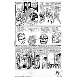 Jack Kirby and Dick Ayers - Fantastic Four #15, page 10 (Marvel, 1962). The Thinker's plan is in full effect in this poignant page as the Fantastic Four go their separate ways to pursue solo careers. A panel of four close-ups is a perfect centerpiece, and practically every panel is bursting with shots of the entire group. This Kirby page doesn't hold back even in its quieter moments and Dick Ayers is at his ever-lovin' best. Truly a classic. 13 1/2" x 21 1/2". Important notice: We expect to be auctioning lots at the rate of 200-250 per hour. Sometimes eBay Premier live bid software cannot keep up with that pace, so we strongly recommend that you place a realistic proxy bid now as insurance to avoid disappointment. Also please note that all Heritage/CAA lots purchased through eBay Premier carry a 20% Buyer's Premium. Please make sure you read the Terms and Conditions.