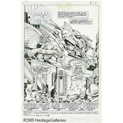 <B>Jack Kirby and Greg Theakston - Super Powers #2 Splash Page Original Art (DC, 1985).</B></I> Three of the Earth's mightiest heroes, Green Arrow, Hawkman and the Red Tornado, blast out of the mind and hand of Jack Kirby and onto this tremendous splash page from the second issue of <B>Super Powers</B></I>. The <B>Super Powers</B></I> mini-series was a tie-in with the "Super Powers" line of DC Comics action figures then being released by Kenner Toys. This breezy splash soars with Kirby kinetics and superheroes in action, lightbox-inked by Greg Theakston. The art measures 13" x 20" with a 11.75" x 18" image area. Some surface discoloration and staining, and the word and type balloons are pasted over the art, otherwise this splendid page is in Excellent condition. No doubt about it, this is the Kirby page you need in your collection - bid today!