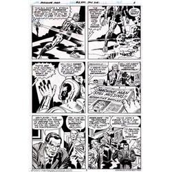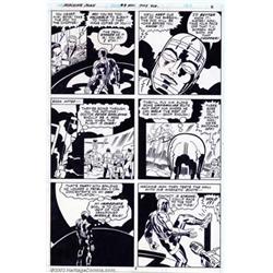 Jack Kirby and Mike Royer - Original Art for Cover and Complete 17-page Story for Machine Man #8 (Marvel, 1978). Thinking computer X-51, aka the Machine Man, has surrendered himself to gangsters so his pal Spalding will be set free -- and now he must find a way out of this lair of larceny before the pin-striped goons exterminate him. Although Machine Man is considered one of his lesser works, this 17-page story shows Kirby going full-blast, and the tale is virtually non-stop action. The finishes were provided by the man most consider to be Kirby's finest post-Sinnott inker, namely Mike Royer, who boldly renders this classic Kirby action and machinery with great finesse. As an extra added bonus, this lot also includes the cover to this issue, evocatively inked by Frank Giacoia. Pages are in excellent condition overall, with the usual blue-line editorial notes and moderate white-out. Important notice: We expect to be auctioning lots at the rate of 200-250 per hour. Sometimes eBay Premier live bid software cannot keep up with that pace, so we strongly recommend that you place a realistic proxy bid now as insurance to avoid disappointment. Also please note that all Heritage/CAA lots purchased through eBay Premier carry a 20% Buyer's Premium. Please make sure you read the Terms and Conditions.