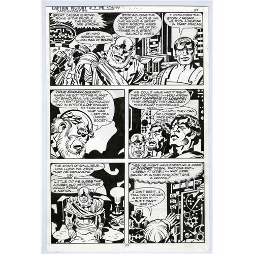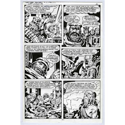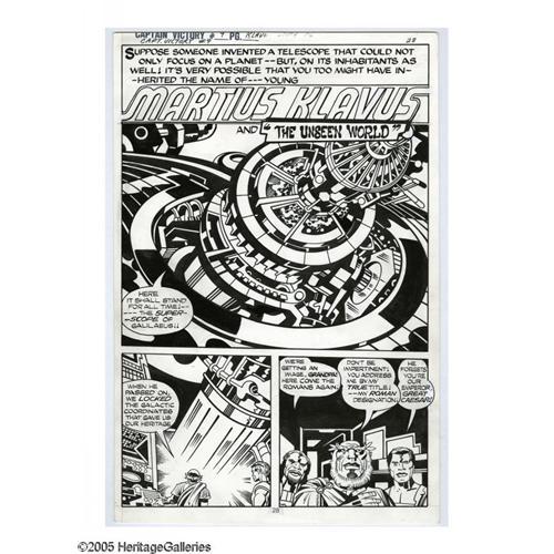 <B>Jack Kirby and Mike Thibodeaux - Captain Victory and the Galactic Rangers #9, Complete 5-page Story "The Unseen World" Original Art (Pacific, 1983).</B></I> This five page back-up continues the look at Ranger Martius Klavus, and his people, and how they came to be influenced by ancient Roman styles and dress. Jack Kirby's trippy pencils are completed with Mike Thibodeaux's inks. Each page has an image area of 10" x 15", and the condition of each is Excellent.