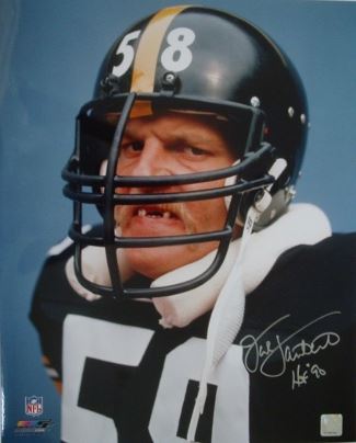 Jack Lambert was known for the hard hits he delivered to members of the opposing team. Lambert prided himself on his ability to hit hard and intimidate the opposition. He was a 9 Time Pro Bowl selection, 7 time First-team All-Pro selection, 4 time Super Bowl champion, voted to the NFL 75th Anniversary All-Time Team, voted to the NFL 1970's and 1980s All-Decade Team, 1974 NFL Defensive Rookie of the Year, 1976 NFL Defensive Player of the Year and Elected to the Pro Football Hall of Fame in 1990. Jack Lambert has hand autographed this Pittsburgh Steelers 16x20 Photo with HOF 90 inscription. Lambert Hologram and Certificate of Authenticity from Athlon Sports.