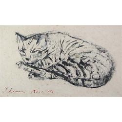 Jack Levine (b.1915) (New York) Ink & Gouache, "Cat Resting," 1931, 8" x 15", signed lower left, Est $1,500 - $2,500