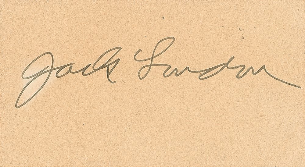 Ink signature, “Jack London,” on an off-white 3.5 x 2 card. In fine condition, with uniform toning.