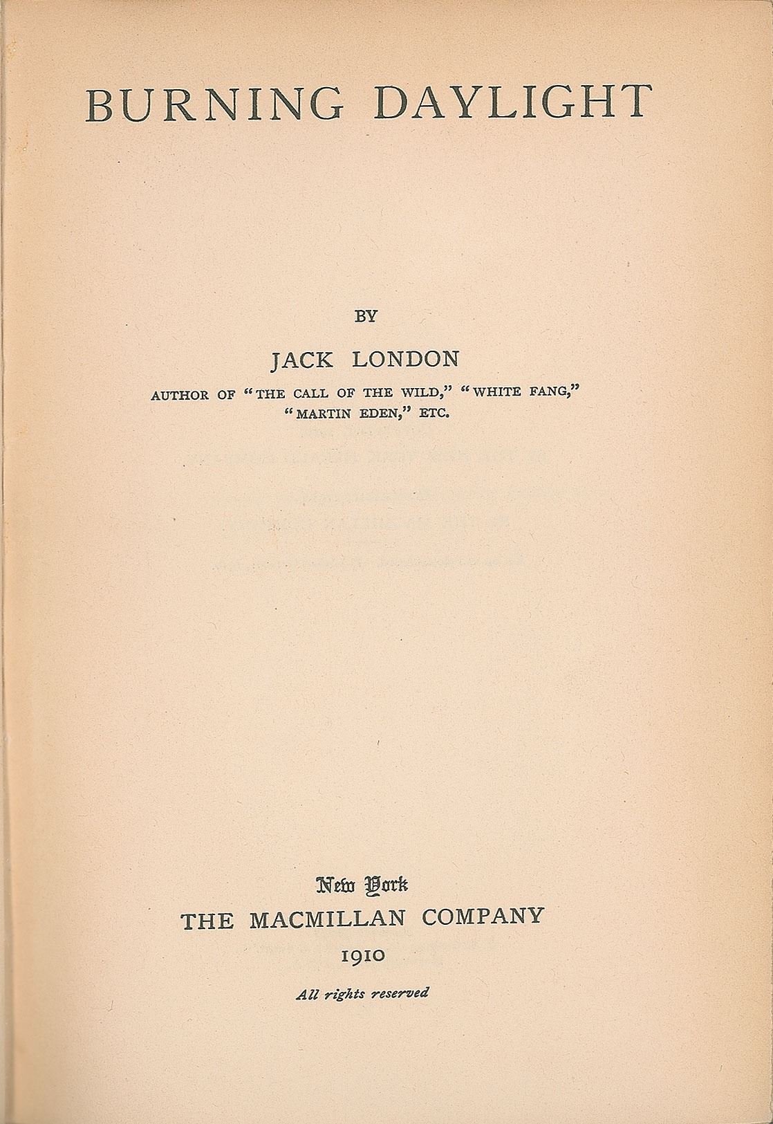 Signed book: Burning Daylight. First edition. NY: Macmillan, 1910. Hardcover, 5.5 x 7.75, 361 pages. Signed on an off-white slip clipped from a check, "Jack London," affixed to the first free end page below one of his personal bookplates. The name of London's friend, the poet and translator John Myers O'Hara, appears to the upper right (perhaps his ownership signature). In very good to fine condition.