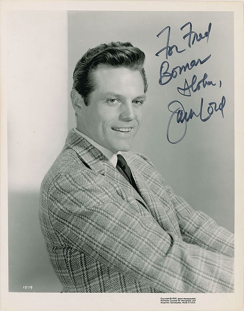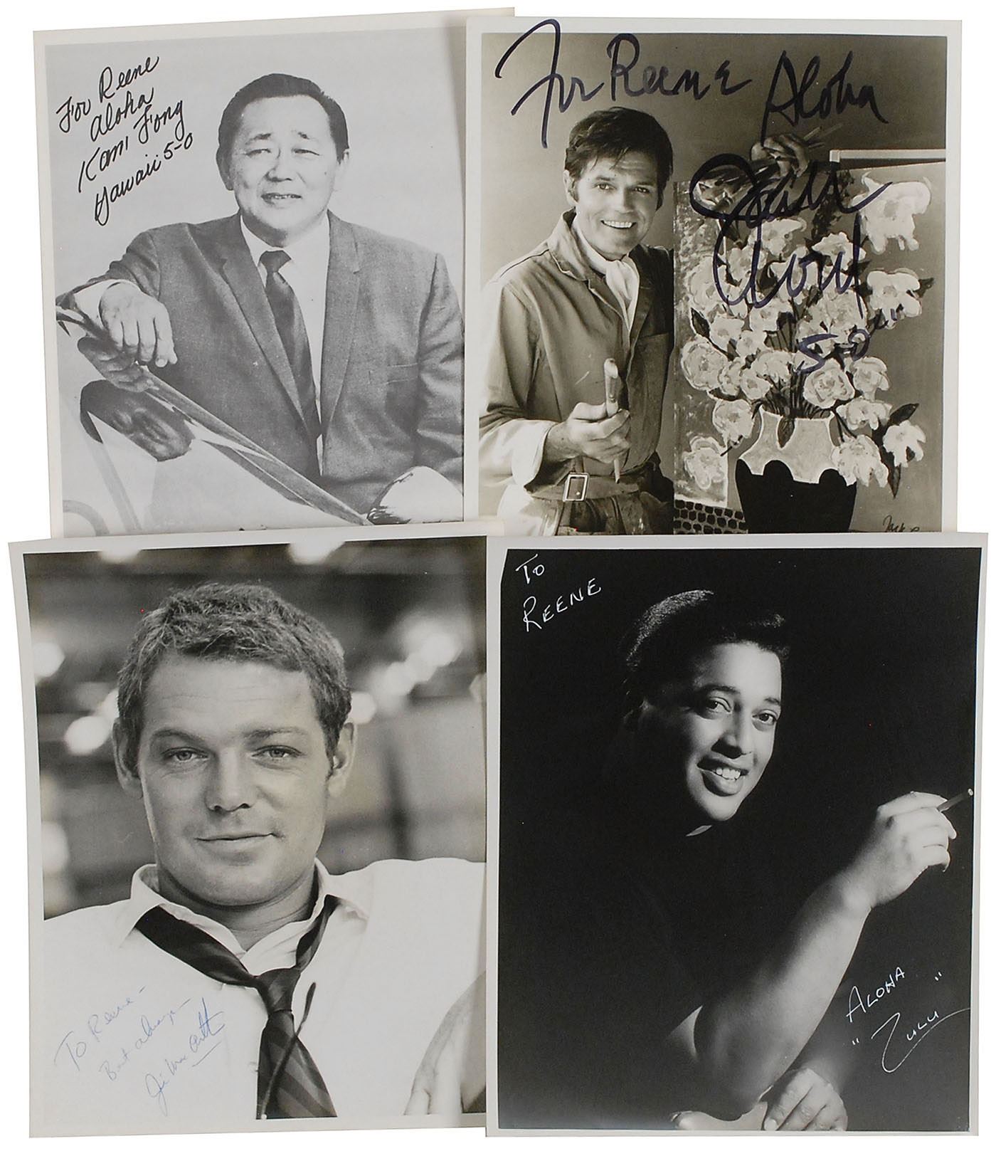 The collection of five 8 x 10 signed photographs includes three of Jack Lord (two inscribed), one of Zulu (ins), one of James MacArthur (ins), and one of Kam Fong (ins). In overall fine condition. A remarkable assemblage from one of the classic television shows of the 1960s–70s, which has experienced a resurgence in popularity thanks to its current CBS reboot. An absolutely fantastic Hawaii Five-O collection.