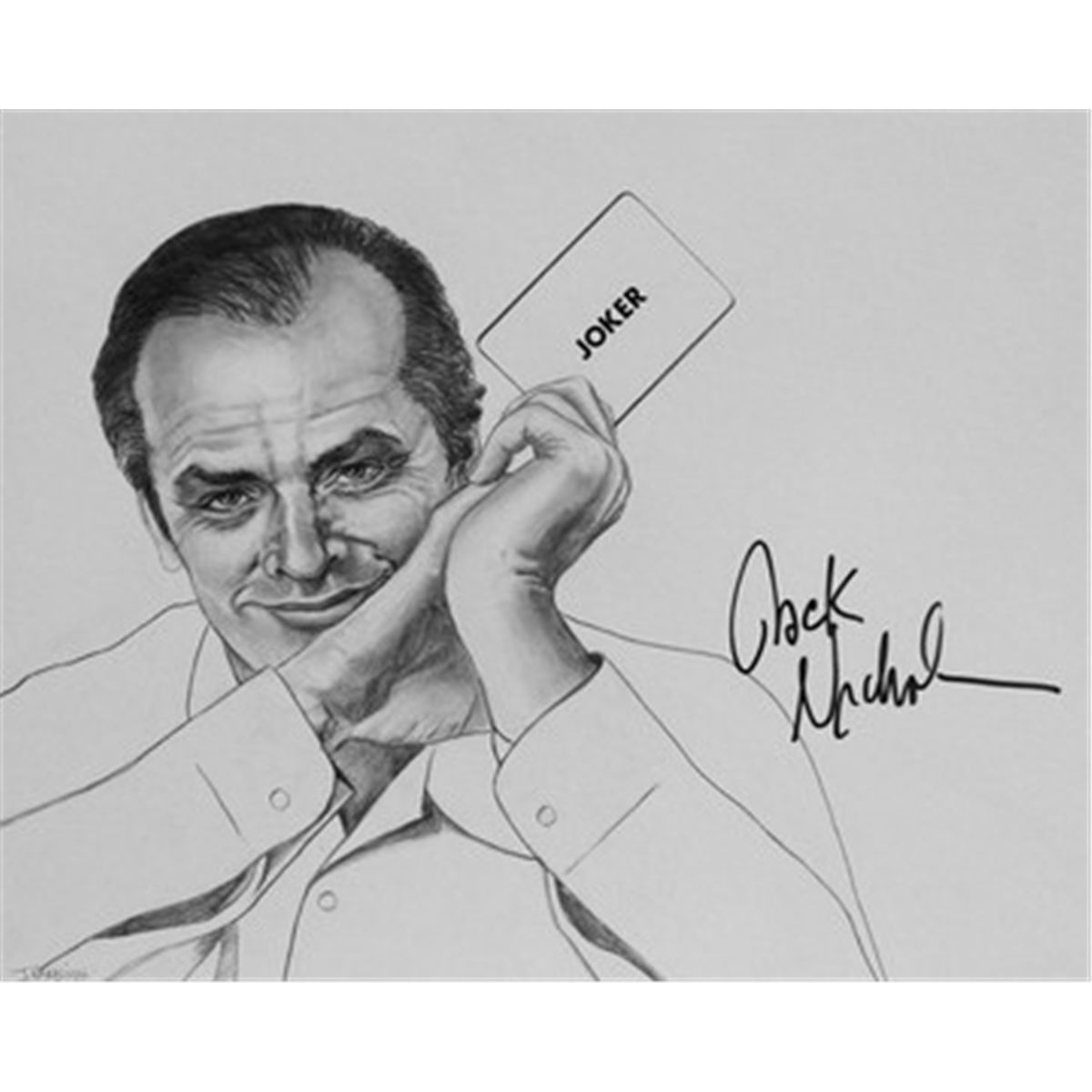 Black and white pencil drawing of Jack Nicholson by Joseph Namsinh, signed by the actor in black felt pen. Signed in Century City in 1995. Measures 16 x 20.