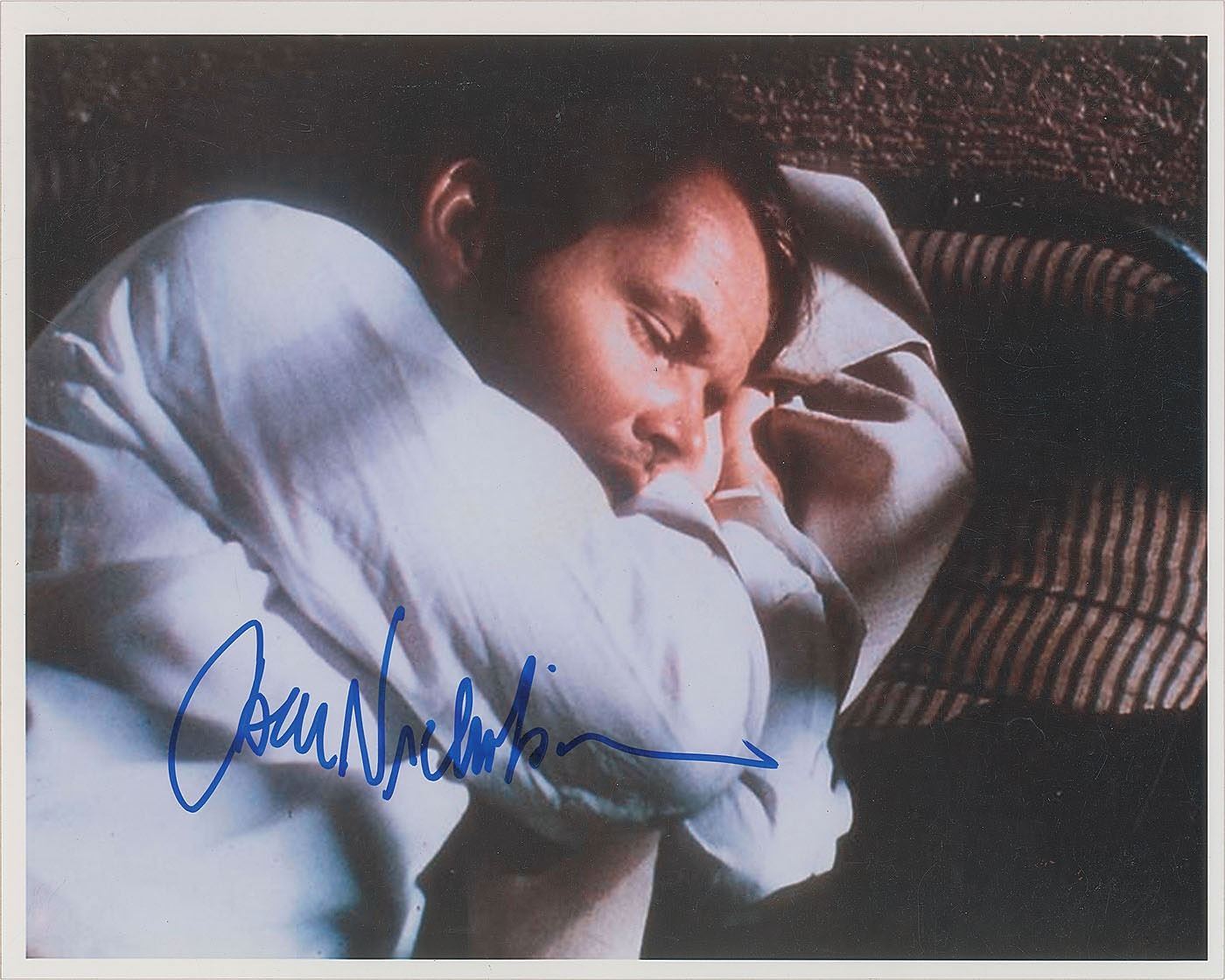 Color satin-finish 15 x 12 photo of an exhausted Nicholson lying down with his hands under his head, signed in blue felt tip. In fine condition.