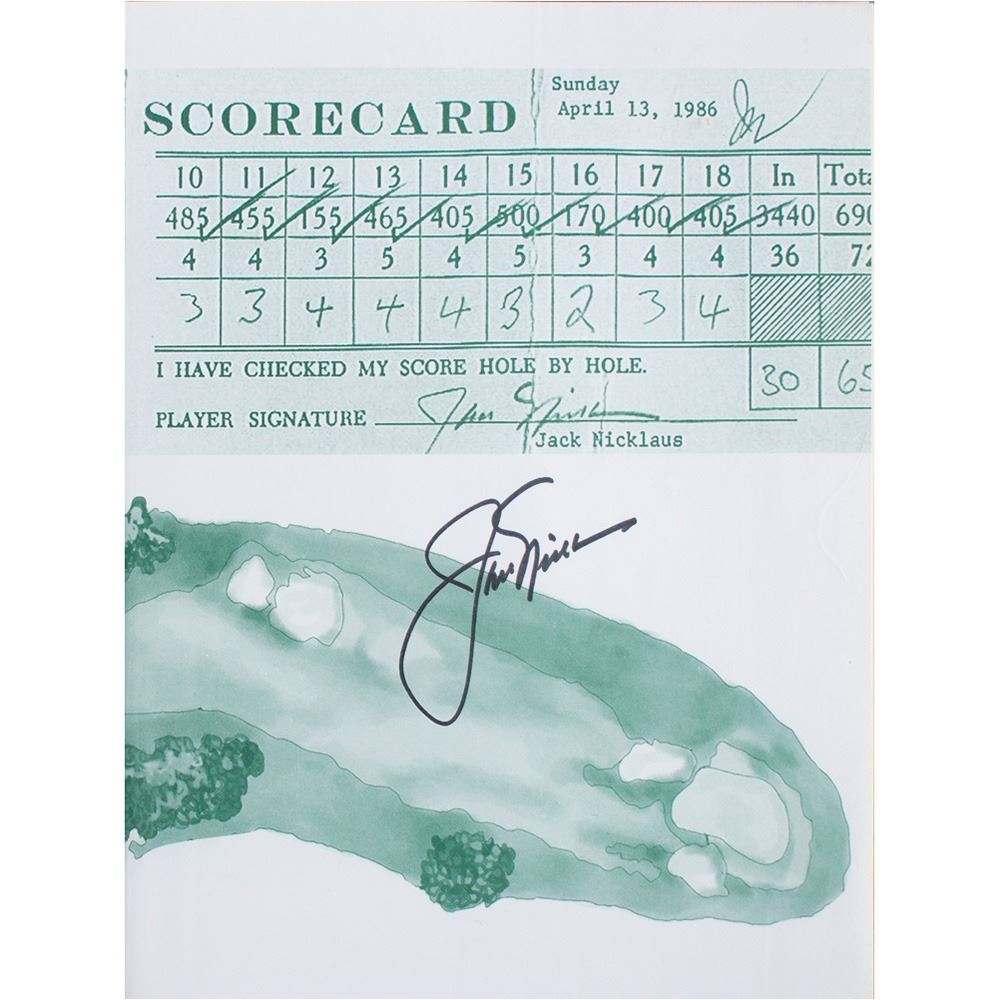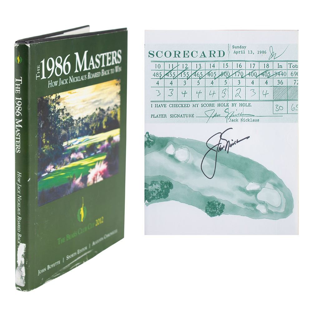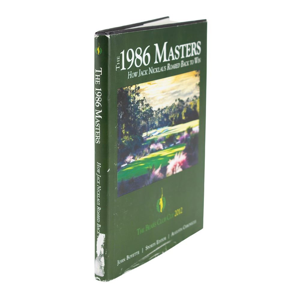 Signed book: The 1986 Masters: How Jack Nicklaus Roared Back to Win. First edition. Guilford, CT: Lyons Press, 2011. Hardcover with dust jacket, 7.5 x 9.5, 175 pages. Signed on the opening page in black felt tip by Nicklaus. In fine condition, with creasing and surface loss to the dust jacket.