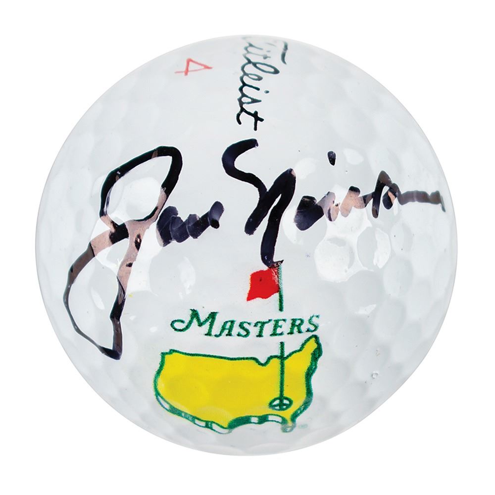 Titleist golf ball with logo for the Masters, signed in black felt tip by Nicklaus. In very fine condition.