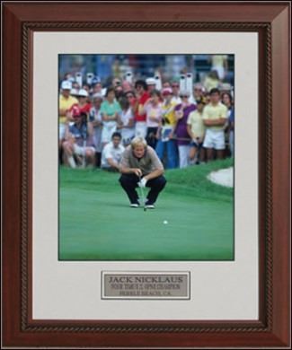Jack Nicklaus, also known as "The Golden Bear", is regarded by many as the greatest professional golfer of all time. Over the course of this 25-year period of 100 major championships as a professional, Nicklaus finished either first or second 36 times, in the top three 45 times, the top five 54 times, and the top 10 67 times. This is a Jack Nicklaus unautographed 16X20 photo. Custom Framed and Matted. A great photo of Jack from his 1972 US Open win.