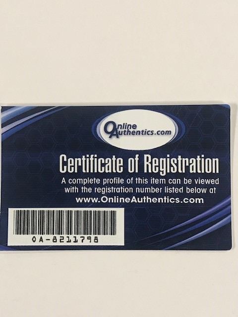 Regarding Memorabilia Items - All autographed memorabilia comes with a Certificate of Authenticity. SAA may have an interest in certain third-party authenticators and bidder hereby waives any potential conflicts therein related to SAA's relationship with such authenticators. SAA is not responsible for the opinions of any of the third-party authenticators. You should in no way rely exclusively on such third-party opinions without conducting your own due diligence prior to bidding. All Certificates of Authenticity may only be relied upon for one year from the date of sale of any item. SAA, and its consignors may be determined to be "Dealer(s)" within the meaning of California Civil Code Section 1739.7(a)(4) and as such make the following statement: SALE OF AUTOGRAPHED SPORTS MEMORABILIA: AS REQUIRED BY LAW, A DEALER WHO SELLS TO A CONSUMER ANY SPORTS MEMORABILIA DESCRIBED AS BEING AUOTOGRAPHED MUST PROVIDE A WRITTEN CERTIFICATE OF AUTHENTICITY AT THE TIME OF SALE. THIS DEALER MAY BE SURETY BONDED OR OTHERWISE INUSRED TO ENSURE THE AUTHENTICITY OF ANY COLLECTIBLE SOLD BY THIS DEALER.