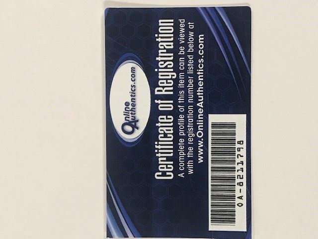 Regarding Memorabilia Items - All autographed memorabilia comes with a Certificate of Authenticity. FAA may have an interest in certain third-party authenticators and bidder hereby waives any potential conflicts therein related to FAA's relationship with such authenticators. FAA is not responsible for the opinions of any of the third-party authenticators. You should in no way rely exclusively on such third-party opinions without conducting your own due diligence prior to bidding. All Certificates of Authenticity may only be relied upon for one year from the date of sale of any item. FAA, and its consignors may be determined to be "Dealer(s)" within the meaning of California Civil Code Section 1739.7(a)(4) and as such make the following statement: SALE OF AUTOGRAPHED SPORTS MEMORABILIA: AS REQUIRED BY LAW, A DEALER WHO SELLS TO A CONSUMER ANY SPORTS MEMORABILIA DESCRIBED AS BEING AUOTOGRAPHED MUST PROVIDE A WRITTEN CERTIFICATE OF AUTHENTICITY AT THE TIME OF SALE. THIS DEALER MAY BE SURETY BONDED OR OTHERWISE INUSRED TO ENSURE THE AUTHENTICITY OF ANY COLLECTIBLE SOLD BY THIS DEALER.